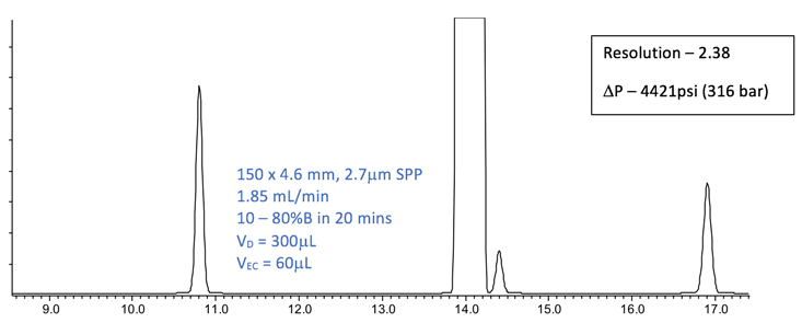 So, we can see that the 100 or 75mm columns are available as options when switching to 2.7μm SPP formats. Let’s assume that we wish to take full advantage of the speed gains offered by SPP particles and that we will opt for the 75mm column.