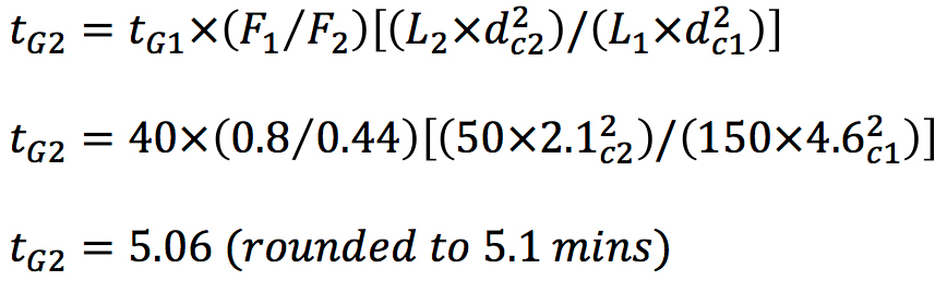 We wish to translate the method to the following column -  L1 50 x 2.1mm, 1.9mm and in this case the stationary phase will remain unchanged.  This change is allowed under the current guidance as the L/dp ratio change is approx.. -12%