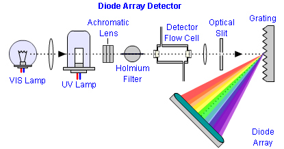 Figure 1:  Schematic diagram of the major components of a reversed optics diode array detector