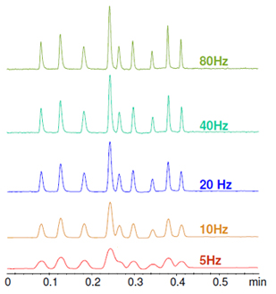 As can be seen in Figure 8a, data acquisition rate can have a significant effect on efficiency, resolution, and sensitivity of a separation and needs to be carefully optimised.