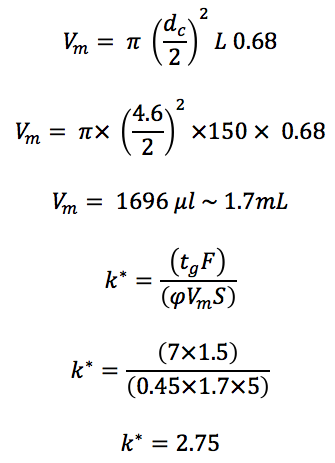 As an aside – the value of Vm can be used when estimating the re-equilibration time for the columns. If use the often recommended 10 x column volume for re-equilibration, the traditional column would take 11.3 minutes to re-equilibrate and the fast column just 1.3 minutes to re-equilibrate.